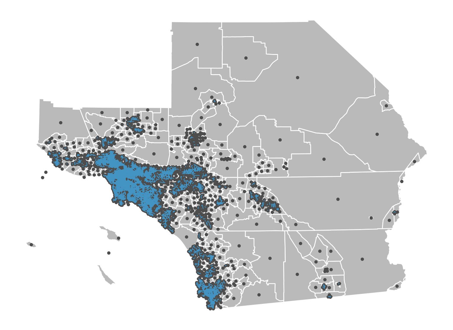 Our coordinate system (UTM 11N) measures distance in meters, so that’s how we’ll define our neighbors