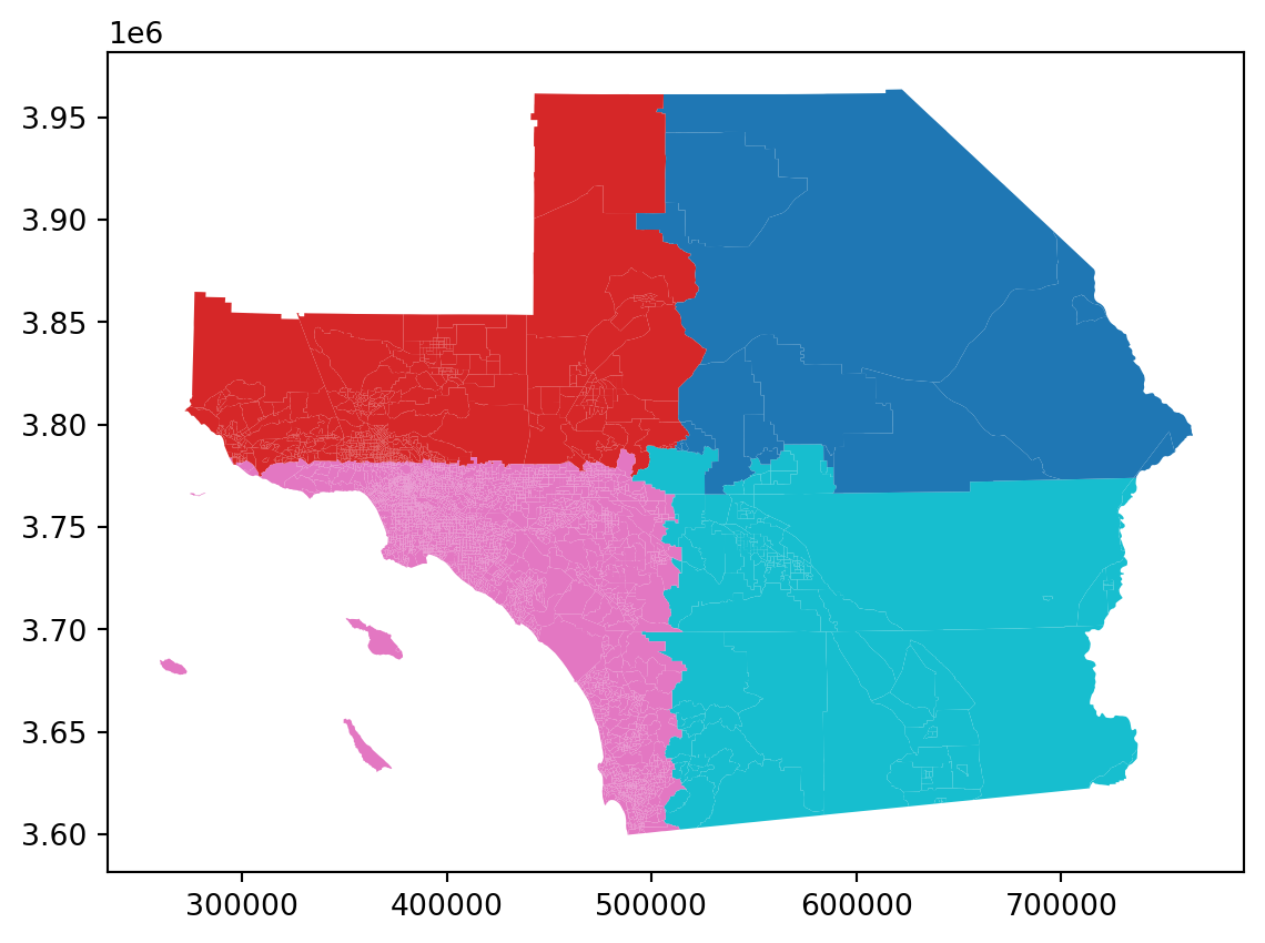 To construct queen weights from a shapefile, we will use geopandas to read the file into a GeoDataFrame, and then use libpysal to construct the weights: