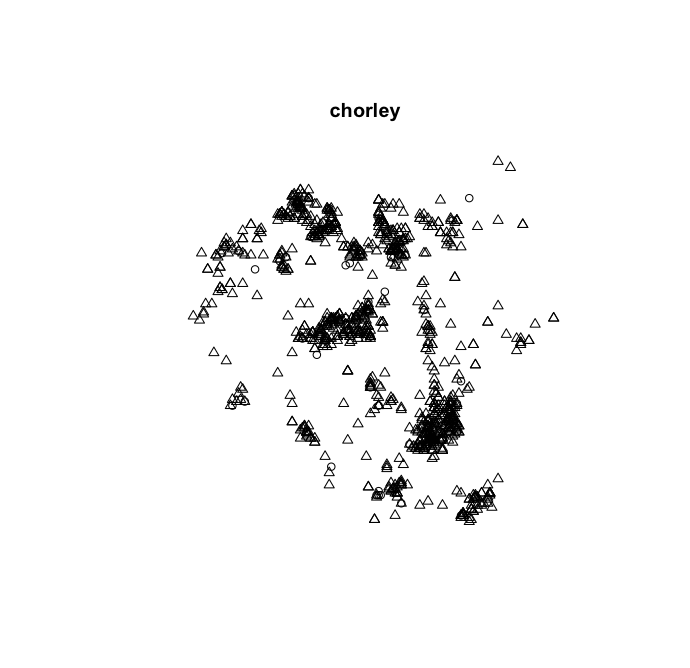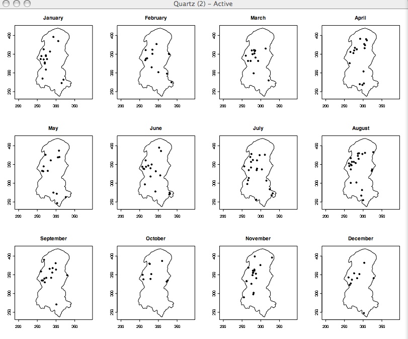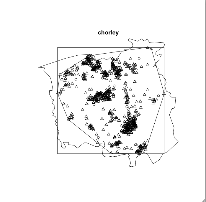 Spatial Point Pattern: A set of events, irregularly distributed within a region \(A\) and presumed to have been generated by some form of stochastic mechanism.